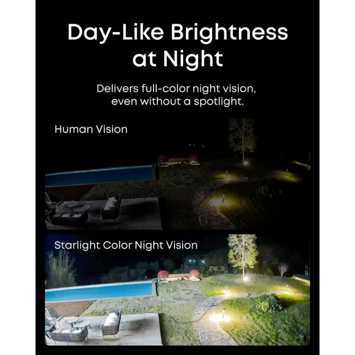Vidite noč v polni dnevni barvi z obdelavo slike AI-ISP. Če želite jasnejši pogled, aktivirajte reflektor in uporabite HDR za preprečevanje preosvetlitve, kar omogoča celo prepoznavo registrske tablice.