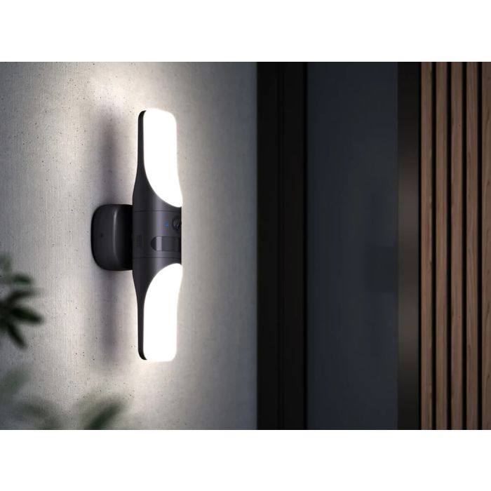 Stenska luč in kamera vse v enem: brezhibno integrirana kamera in luč spremljata zunanjost vašega doma in osvetljujeta prostore do velikosti 9 m s 1200 lumni svetlosti – kar vam daje močnejši občutek varnosti v najtemnejših nočeh. Izberite tudi želene ravni svetlosti z možnostjo zatemnitve.