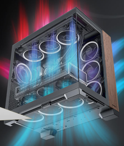Lahko sprejme tri 120 mm/140 mm ali dva 160 mm ventilatorja na vrhu in na dnu za učinkovito hlajenje GPE.