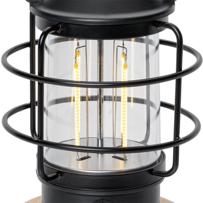 Svetilka Lamparina združuje vzdržljivost in eleganco, s trdnim lakiranim kovinskim okvirjem, bambusovim podstavkom in prosojnim plastičnim senčnikom. Je vsestranska rešitev za kampiranje, druženje na prostem ali v nujnih primerih.
