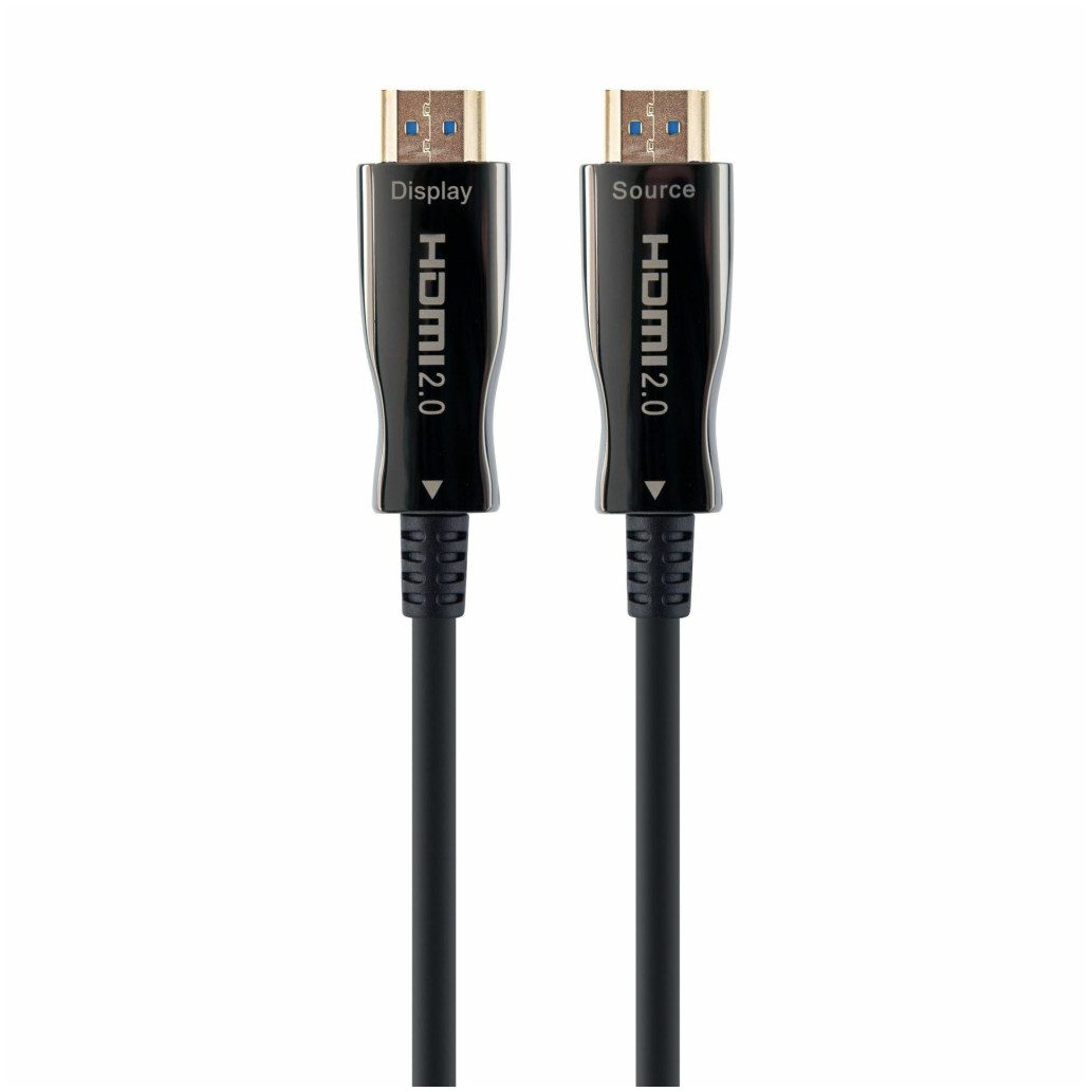 Cablexpert hibridni optični HDMI AOC kabel dolžine 10m uporablja tehnologijo optičnih vlaken in zmanjšuje tveganje EMI/RFI v okoljih z visokimi motnjami. Vzdržljiv tanek pleten kabel vrhunske kakovosti z elegantnimi kovinskimi priključki, podpira ločljivosti 4K pri 60Hz.