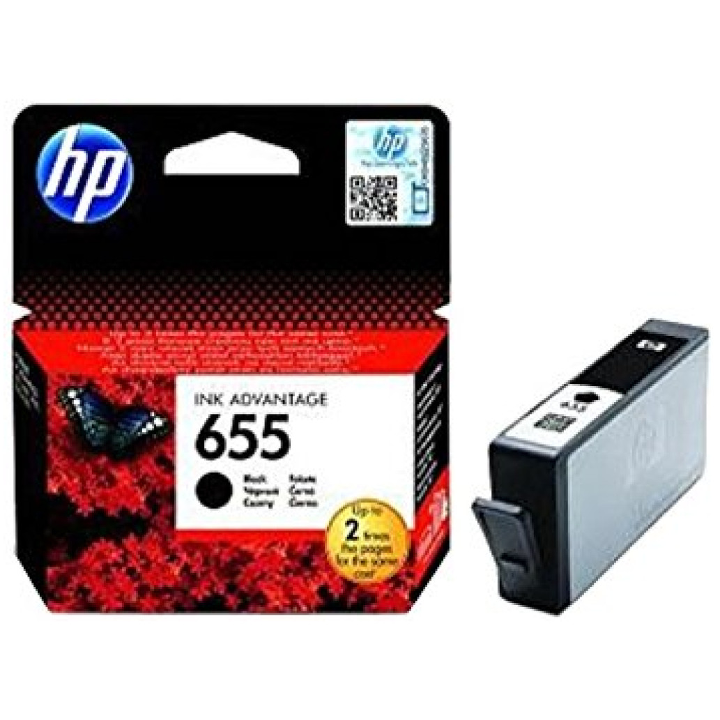 HP 655 Black Original Ink Advantage kartuša. Vrsta barvnega črnila: Črnilo na osnovi barvila, Količina v pakiranju: 1 kos