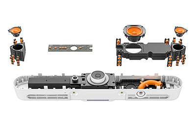 Trije zvočniki z majno distorzijo in tehnologijo RightSound napolnijo sobo s čistim zvokom. 6 vgrajenih mikrofonov s tehnologijo tvorjenja žarkov usmerjeno pobira zvok trenutno aktivnega govorca in zadušuje zvok iz okolice. Rally Bar Mini omogoča tudi priklop do dveh dodatnih mikrofonov Rally Mic Pod.