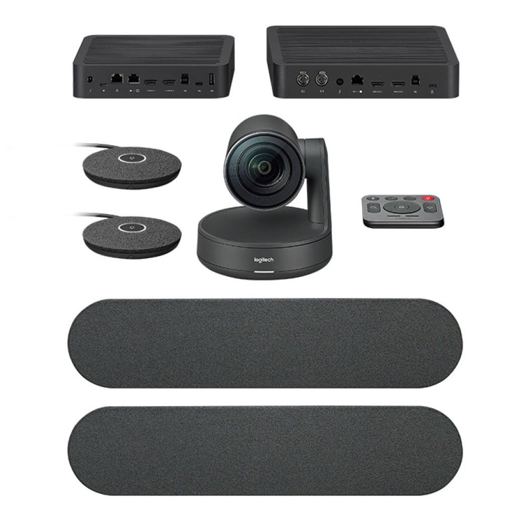 Logitech Rally. Vrsta izdelka: Skupinski videokonferenčni sistem, Število oseb: 16 oseb. Vrsta HD: 4K Ultra HD, podprti video načini: 720p, 1080p, 1440p, največja hitrost slike: 60 fps, digitalni zoom: 15x. Vgrajena ethernet povezava. Barva izdelka: črna