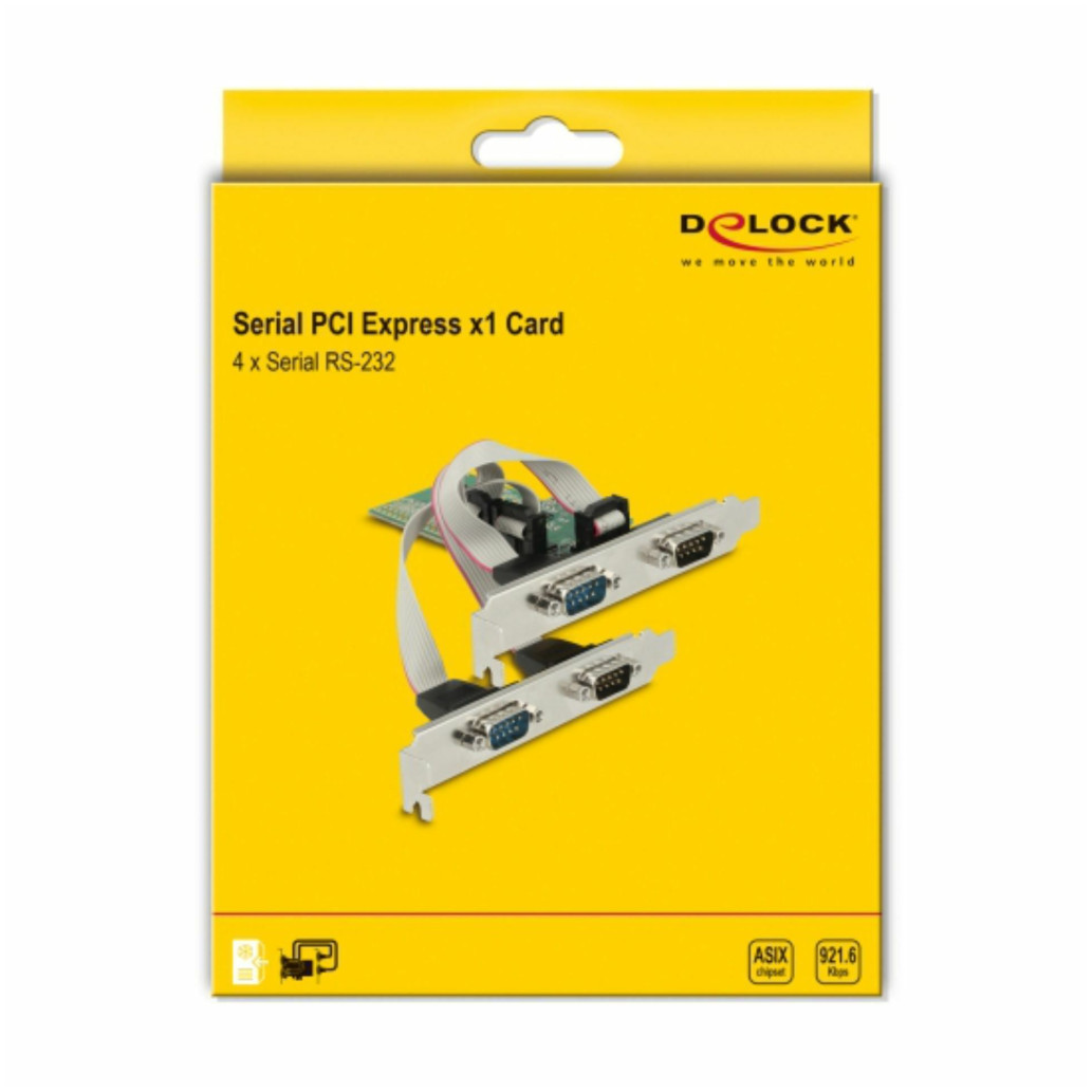 Delock vgradna PCI Express kartica razširi vaš PC s štirimi dodatnimi zunanjimi serijskimi priključki. Na kartico lahko priključite različne naprave, npr. tiskalnik, miška. Z uporabo priloženega nizkoprofilnih adapterjev lahko kartico namestite v Mini-PC.