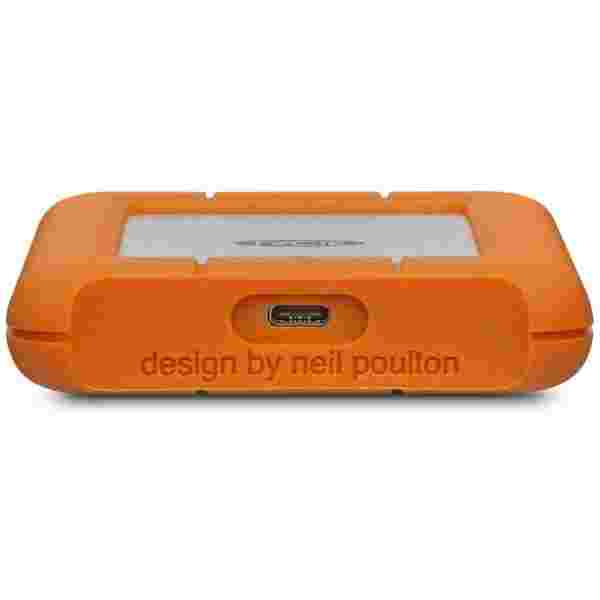 LaCie Rugged USB-C je prenosni zunanji trdi disk, zasnovan za uporabnike, ki potrebujejo zanesljivo in vzdržljivo shranjevanje podatkov v zahtevnih okoljih. Njegova robustna zasnova, jo je zasnoval oblikovalec Neil Poulton, omogoča odpornost na padce, pritiske in vremenske vplive, kar ga naredi idealnega za uporabo na terenu.