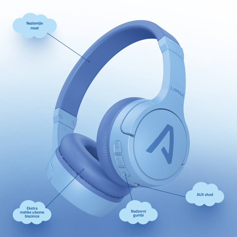Največja glasnost je omejena na 85 ali 94 dB, samo preklopite na izbrano. Slušalke obenem vsebujejo tehnologijo LAMAX SafeSound2.0©, namenjeno zaščiti sluha. Tudi s temi ukrepi bo otrok užival v poslušanju v odlični kakovosti zahvaljujoč LAMAX BeatBass©.