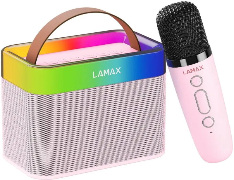 LAMAX KaraokeKid1 je kot bonbonček in otroci se bodo vanj zaljubili na prvi pogled. Rad ima roza in modro barvo, karaoke mikrofon pa se ponaša s prav tako primernim otroškim dizajnom. Atmosfero pravega šova dodatno poudari barvita LED osvetlitev ozadja. Otrok lahko nastop začne kjerkoli, saj je zvočnik enostavno prenosljiv, njegovo težo pa prenesejo tudi najmanjši umetniki. Ima tudi dostojno vzdržljivost, predvaja do 8 ur, baterija mikrofona pa zdrži do 6 ur delovanja.