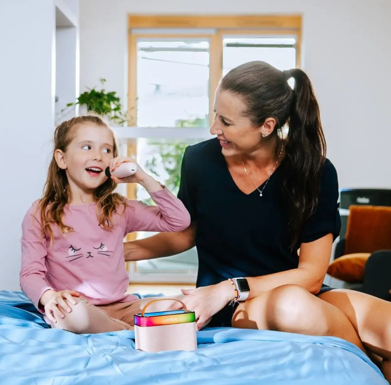 Otroci se ne bojijo dati vse od sebe, celo začeti pravo glasbeno predstavo. Pri tem jim bo spretno pomagal zvočnik LAMAX KaraokeKid1 v hladno modri ali roza otroški izvedbi, ki ima prav tako dovršen karaoke mikrofon. Seveda lahko zvočnik uporabite tudi za poslušanje pravljic ali glasbe, a otroci se bodo z njim res odlično zabavali, še posebej med karaokami na otroških zabavah ali pri vadbi svojih pevskih nastopov. Način za karaoke lahko odstrani vokale in ustvari karaoke različico vsake pesmi. Z mikrofonom, ki lahko spremeni glas, se lahko celo odrasli izognejo. Kdo ne želi zveneti demonsko ali kot Smrkec? Pravo vzdušje dopolnjuje barvna LED osvetlitev ozadja. Zvočnik lahko preprosto povežete z različnimi napravami preko sodobnega Bluetooth 5.3. Ta prenosni pomočnik bo vsakega malčka spremenil v glasbeno zvezdo najvišjega razreda.