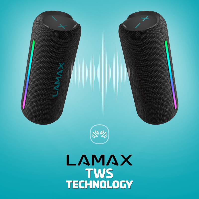 LAMAX LightNote1. V majhnem, kompaktnem ohišju prenosnega zvočnika se skriva moč do 30 W, ki vas bo zabavala do 20 ur. Povežite svojo napravo z njim preko Bluetooth 5.3 in uživajte v seznamih predvajanja, filmih ali podcastih do maksimuma. Čist in uravnotežen zvok lahko povečate s priključitvijo drugega zvočnika, ki bo zagotavljal funkcije TWS. Ali imate datoteke na kartici microSD ali drugi napravi? Bravo, zvočnik podpira številne povezave in formate. In če seznama predvajanja nimate pri roki, kliknite na FM radio in zabava se lahko začne. LED osvetlitev ozadja dopolnjuje vzdušje. Upravljanje tega ljubljenčka je preprosto in intuitivno. Ko sporoči, da mu zmanjkuje zraka, ga lahko napolnite preko USB-C in spet bo šel z vami. Prosto pojdite ven, zaščita IPX6 je kos tudi vremenskim razmeram.