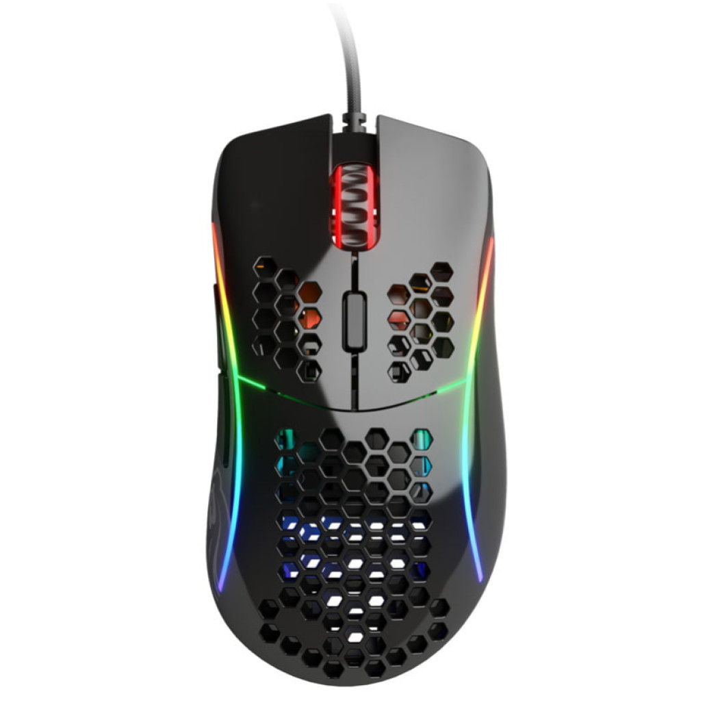 Glorious PC Gaming Race Model D. Faktor oblike: desno. Tehnologija zaznavanja gibanja: Optični, Vmesnik naprave: USB Type-A, Ločljivost gibanja: 12000 DPI, Odzivni čas: 1 ms, Vrsta gumbov: Pritisnjeni gumbi, Število gumbov: 6, Tip drsenja: Kolesce, Pospešek (maks.): 50 G Barve osvetlitve: Multi. Vir napajanja: kabel. Barva izdelka: Črna