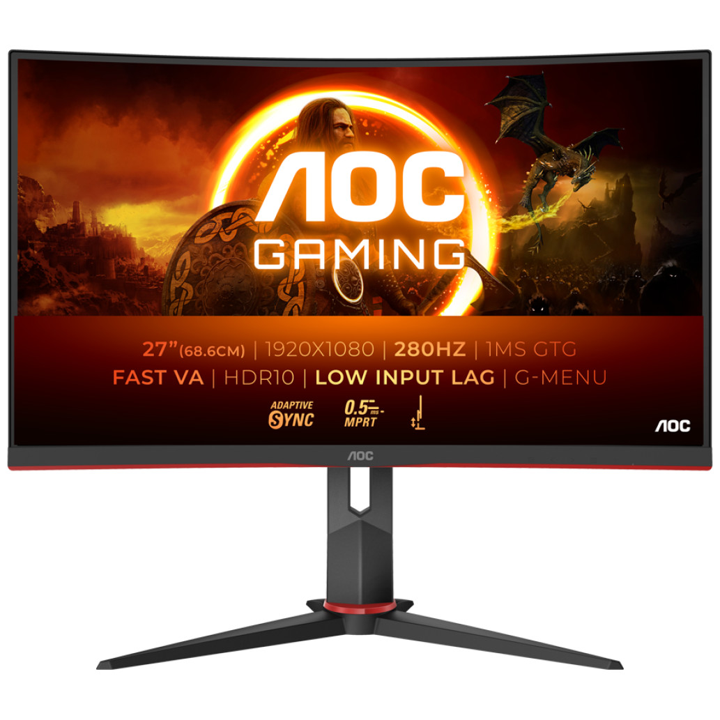 AOC Gaming C27G2Z3 ukrivljen monitor – 68.6cm (27″), FHD (1920 x 1080), Fast VA, 1500R, 280Hz, 1ms (GTG), Adaptive Sync, HDR10, 2x HDMI 2.0, 1x DP 1.4