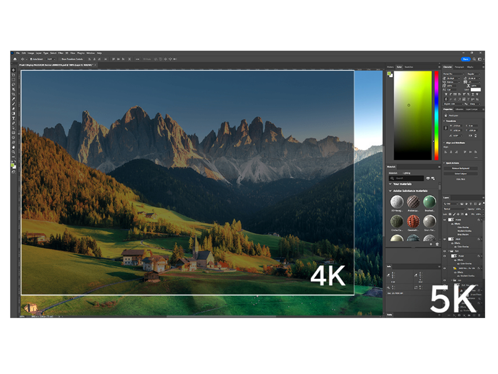 5K HDR (5120 x 2880) zaslon PA27JCV se ponaša z gostoto slikovnih pik 218 PPI, kar je 2,5-krat več kot PPI 27-palčnega FHD zaslona, s čimer zagotavlja kakovostno izkušnjo “Retina” zaslona. Zaslon z visoko gostoto pik omogoča ostro in lahko berljivo besedilo, medtem ko izboljšana vizualna jasnost prinaša pomembne prednosti ustvarjalcem, katerim so pomembne podrobnosti. PA27JCV ponuja 77 % več delovnega prostora kot 4K monitor enake velikosti. Večje platno omogoča ustvarjalcem enostavno navigacijo po ustvarjalnih vsebinah.