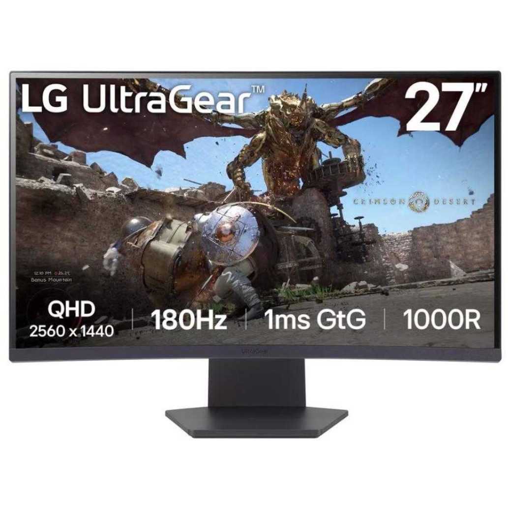 Monitor LG 68,6 cm (27,0″) 27GS60QC 2560×1440 Curved Gaming 180Hz VA 1ms 2xHDMI DisplayPort Pivot sRGB99% FreeSync Premium G-Sync Compatible HDR10 UltraGear