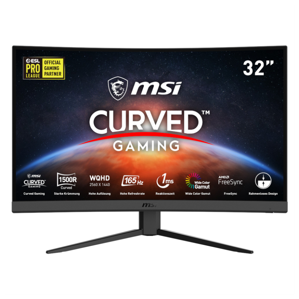 Monitor MSI 80 cm (31,5″) G32CQ4 2560×1440 Curved Gaming 165Hz VA 1ms 2xHDMI DisplayPort FreeSync Premium Optix črna