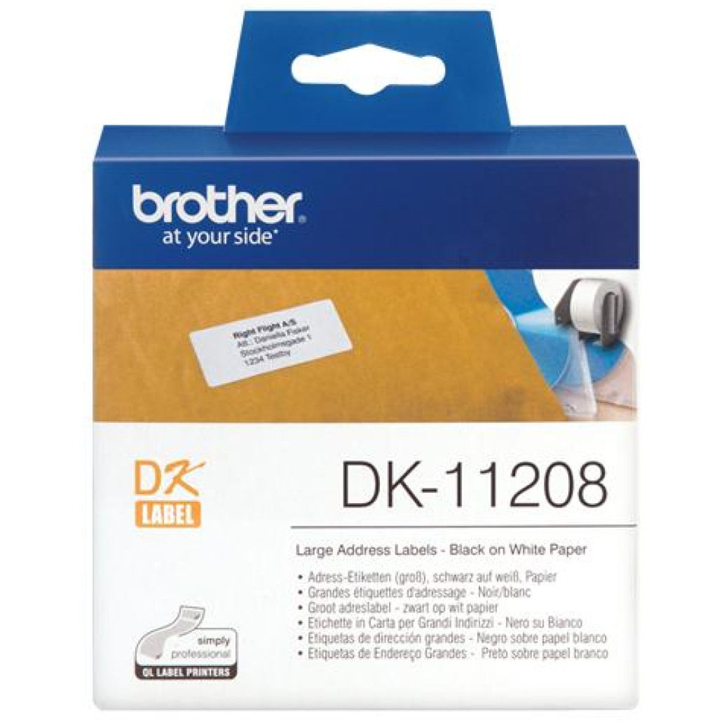 Nalepke za tiskalnik Brother DK11208 večje nalepke bela rola s črnim izpisom – 38mm x 90mm 400 kos