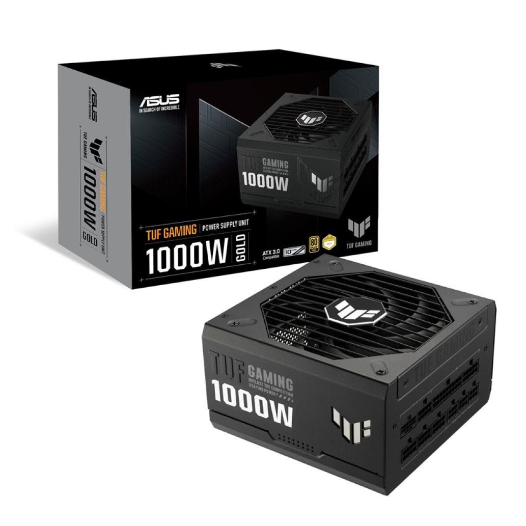 ASUS TUF Gaming 1000W 80 Plus Gold napajalnik, združljiv z ATX 3.0, popolnoma modularni etsirani kabli, vojaški certifikat, zasnova ventilatorja Axial-tech, dvojna ležaja krogličnih ventilatorjev, zaščitna prevleka PCB, garancija 10 let.