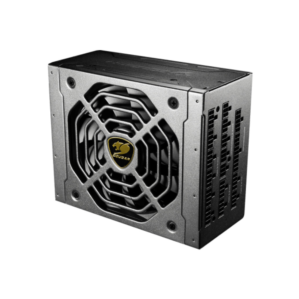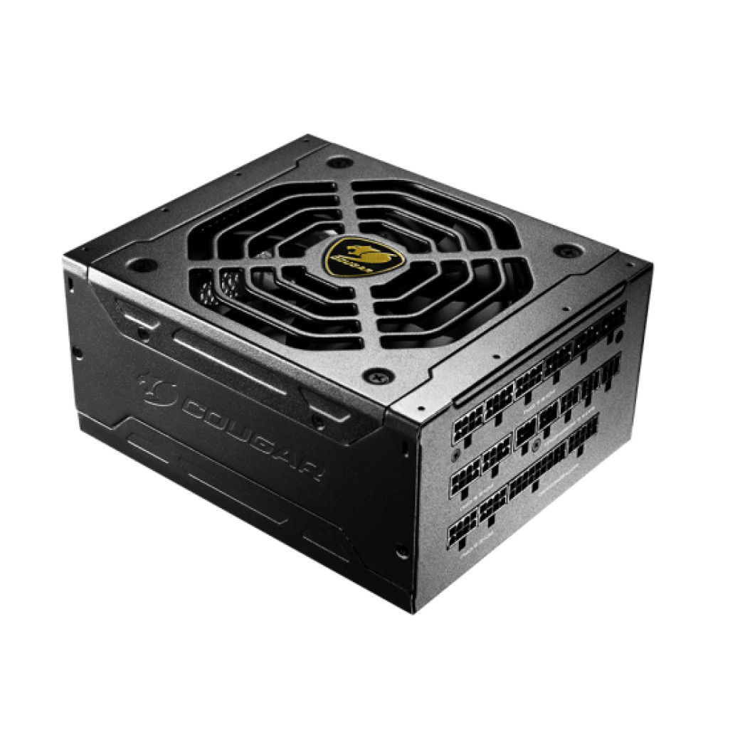 Cougar GEX 1050. Skupna moč: 1050 W, AC vhodna napetost: 100 – 240 V, AC vhodna frekvenca: 47 – 63 Hz. Vtič za matično ploščo: 20+4 pinski ATX, dolžina napajalnega kabla matične plošče: 65 cm, dolžina napajalnega kabla PCI Express: 65 cm. Namen: osebni računalnik, napajalna enota (PSU) Faktor oblike: ATX, certifikat 80 Plus: 80 PLUS Gold. Barva izdelka: Črna, Hlajenje: Aktivno, Namestitev ventilatorja: Zgoraj. Priloženi kabli: CPU, PATA, PCIe.