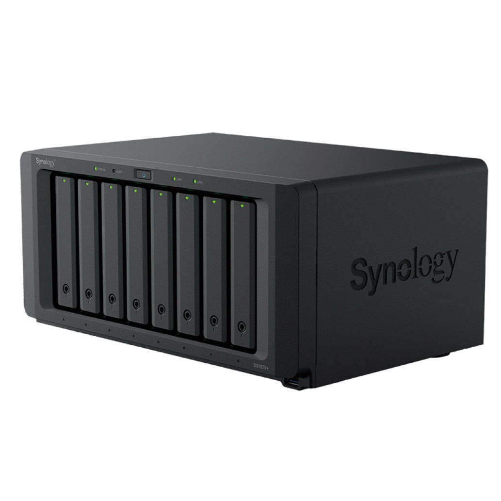 Synology DiskStation DS1825+, Tower, 8-BAY 3.5” SATA HDD/SSD, 2xM.2 2280 NVMe SSD, CPU AMD Ryzen Quad-Core 2.2 GHz, 8GB DDR4, 2xRJ-45 2.5GbE LAN Port, 3xUSB 3.2, 2 x USB-C expansion ports (Expandable to 18 Bays with 2 x DX525), 1xGen3 x8 PCIe,3y