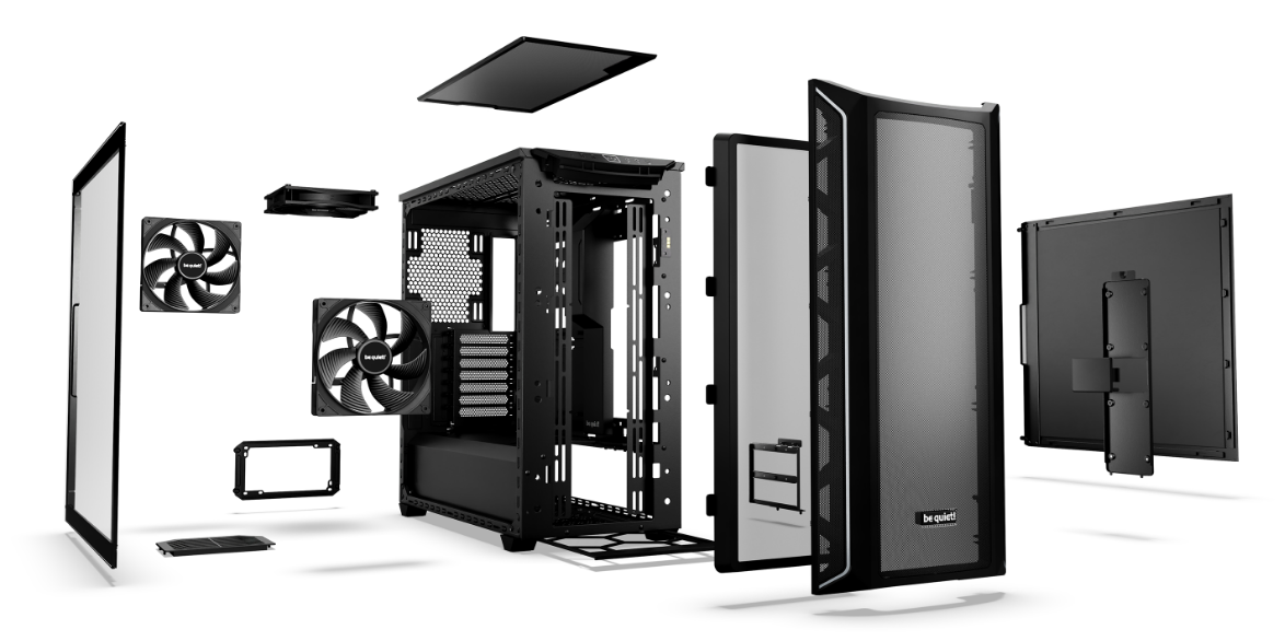 Shadow Base 800 midiATX z optimiziranim pretokom zraka, ponuja tiho delovanje z dovolj prostora za komponente, kot so grafične kartice, 420 mm radiatorji ali matične plošče E-ATX.
