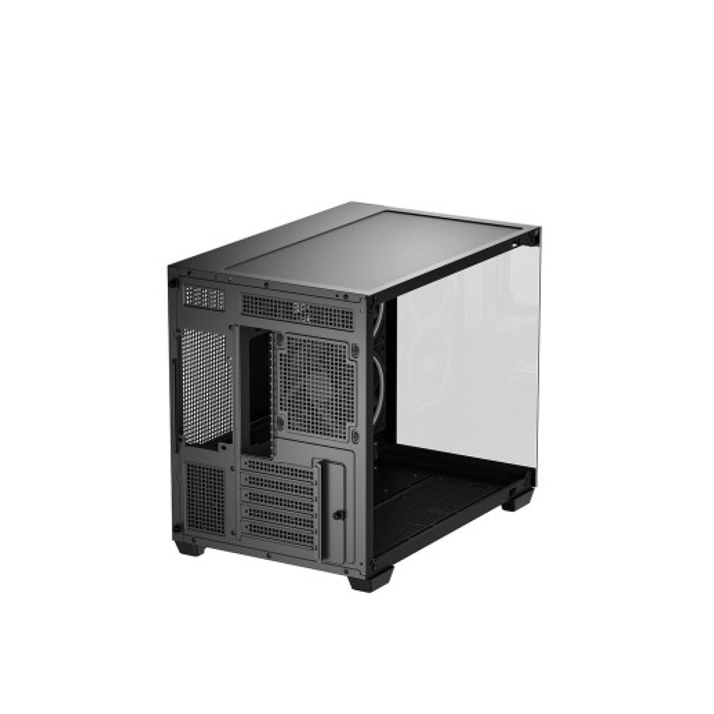 Ohišje je opremljeno z dvema ventilatorjema serije FL z obrnjenimi lopaticami na strani in enim standardnim na zadnji strani, ki skupaj tvorijo horizontalni prezračevalni kanal za učinkovito hlajenje. DeepCoolov edinstveni sistem osvetlitve zagotavlja enakomerno osvetlitev v celotnem ohišju.