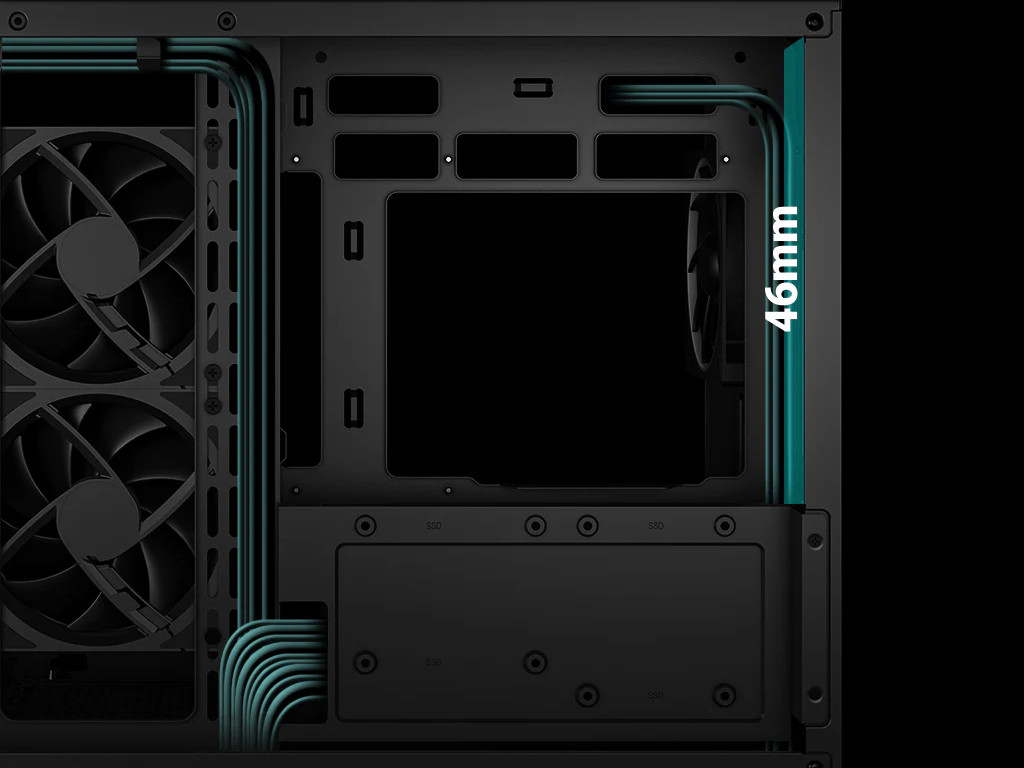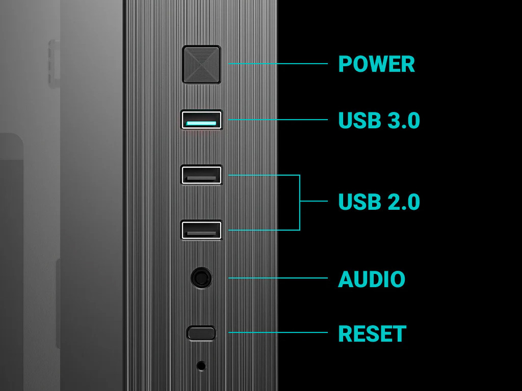 Magnetni protiprašni filtri na vrhu in dnu zmanjšujejo nabiranje prahu in olajšajo čiščenje. Stranski priključni panel s priključkoma USB 3.0, dvema USB 2.0 in avdio priključkom omogoča hiter dostop.Prostoren 46 mm prostor za upravljanje kablov olajša njihovo vodenje in organizacijo.