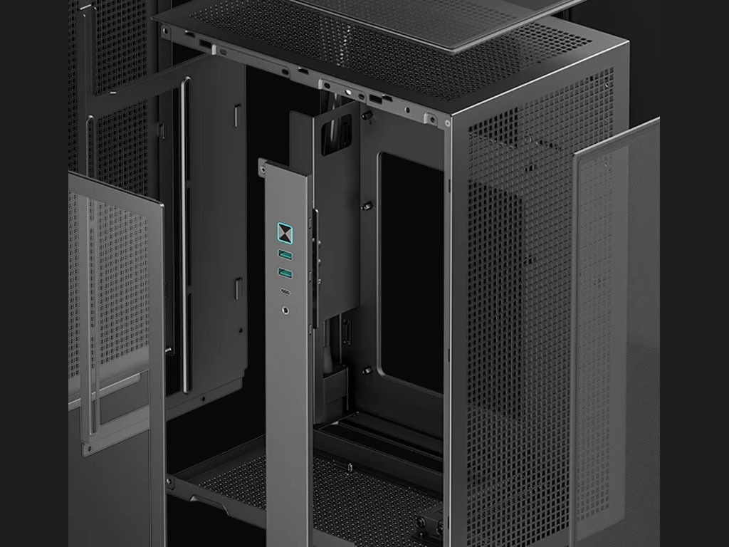 Ohišje je enostavno za vsakodnevno uporabo. Sprednja stranica ima 2× USB 3.0, 1x USB-C on kombiniran 3.5 mm vhod. Protiprašni filtri na štirih straneh poskrbijo za manj prašenja v notranjosti in enostavnejše vzdrževanje.