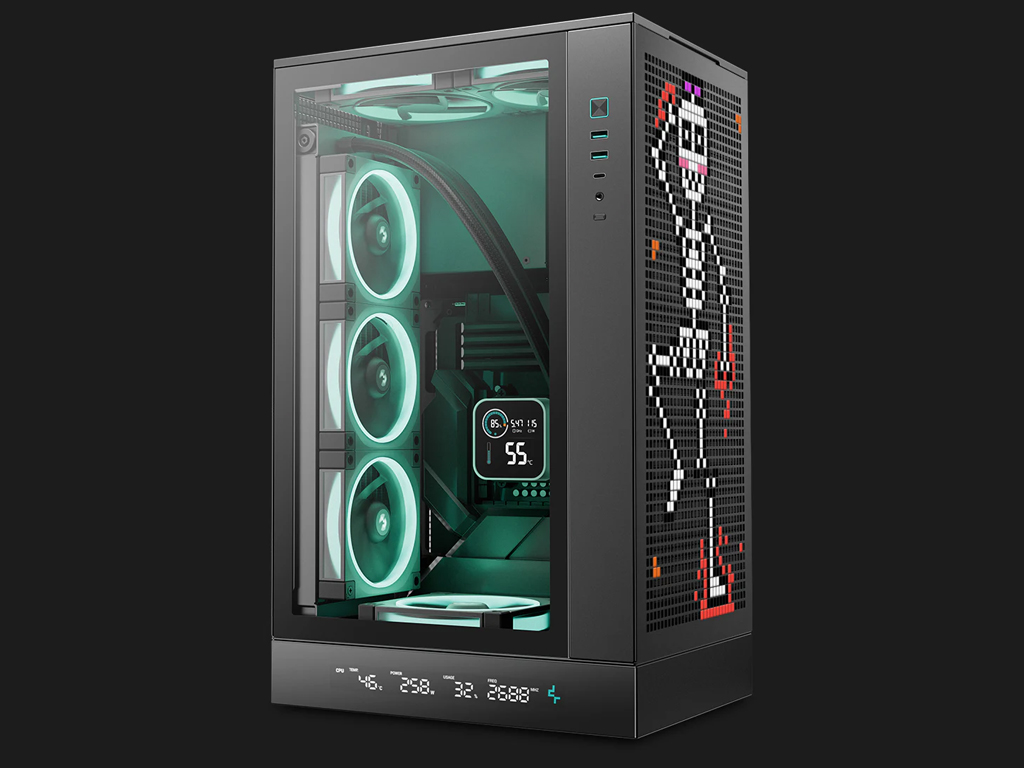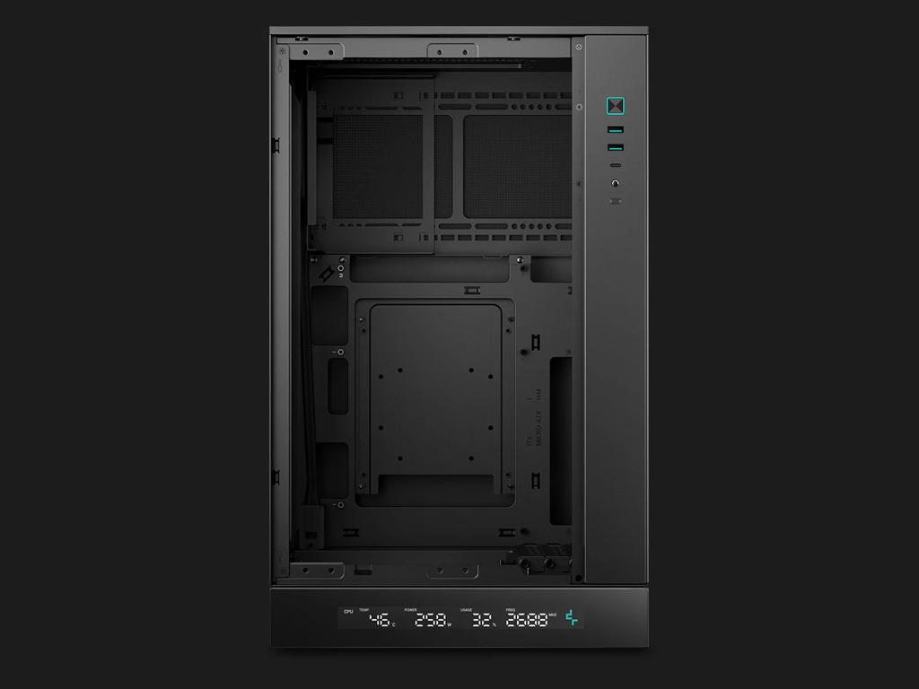V spodnji del ohišja je vgrajen digitalni zaslon za spremljanje delovanja komponent. Načini prikaza se lahko preklapljajo med podatki o procesorju, grafični kartici in napajalniku. Ohišje odlikuje možnost vgradnje grafične kartice do 388 mm dolžine in ATX napajalnika.