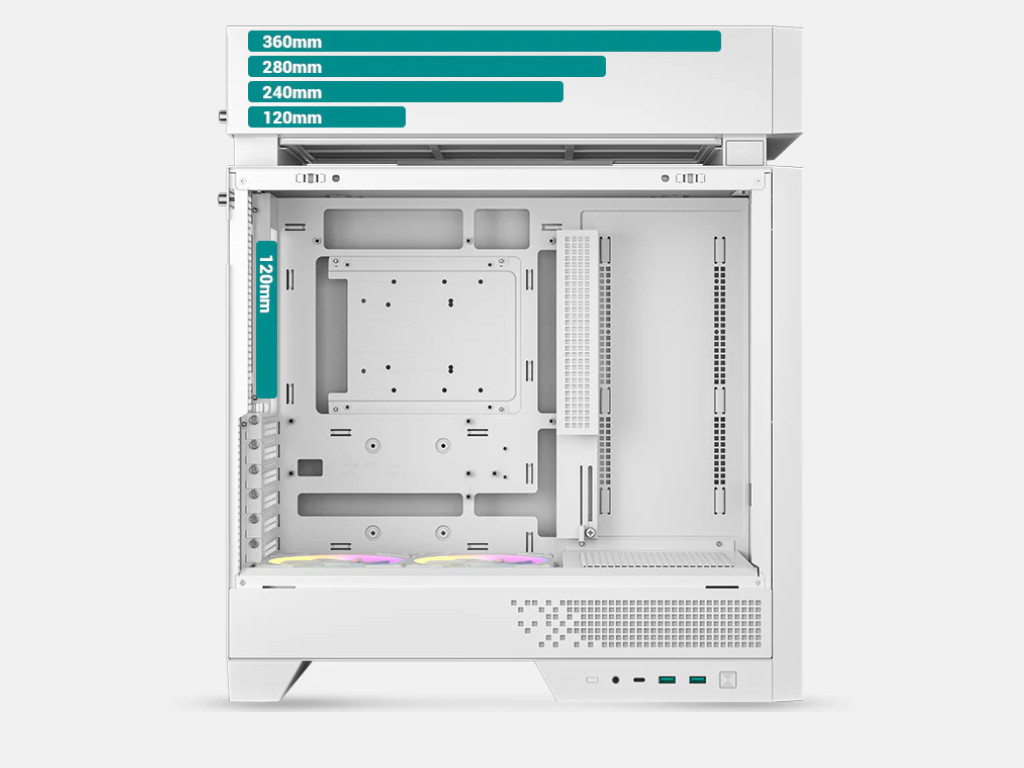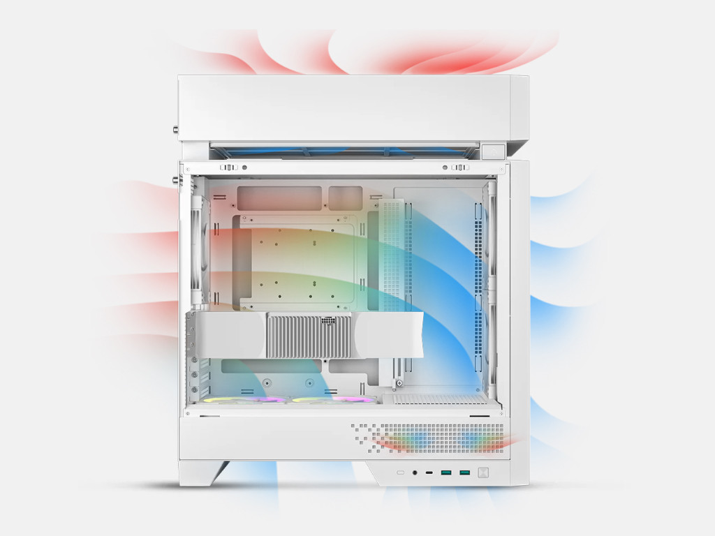 Predhodno nameščena in ventilatorja FL12R SE vsrkavata svež zrak in osvetljujeta komponente. Ohišje tudi podpira 360 mm AIO hladilnike in do osem 120 mm ventilatorjev. Nad radiatorjem je mogoče namestiti kofiguracijo ventilator–radiator–ventilator s tremi 120 mm ali dvema 140 mm ventilatorjema.