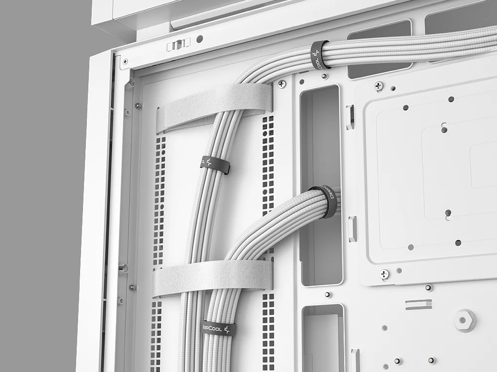 Ohišje ima na zadnji strani 35 mm prostora za kable, vgrajen je izvlečni nosilec za slušalke, stranice se enostavno odstranijo brez uporabe orodja. Priložen je nosilec za grafično kartico, napajalnik pa ima mesto na sprednji strani ohišja. Prednja stranica ima 2× USB-A 3.0, 1× USB-C in vhod za slušalke.
