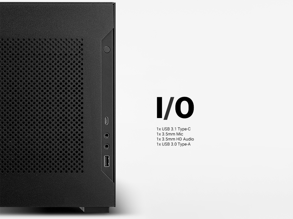 Ohišje ima inteligentno razporejeno zasnovo, ki deluje po principu “sendviča”. Omogoča enostavno namestitev matične plošče, grafične kartice, napajalnika in AIO sistema.