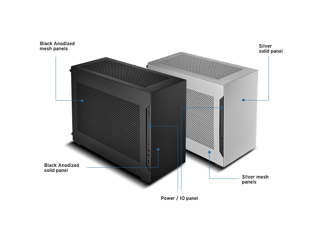 Izjemno kompaktno ohišje A4-H2O je manjše od igralne konzole. Minimalistična oblika je primerna za vsak prostor, v njem pa je prostor za grafično kartico do dolžine 322 mm in 240 mm AIO sistem.