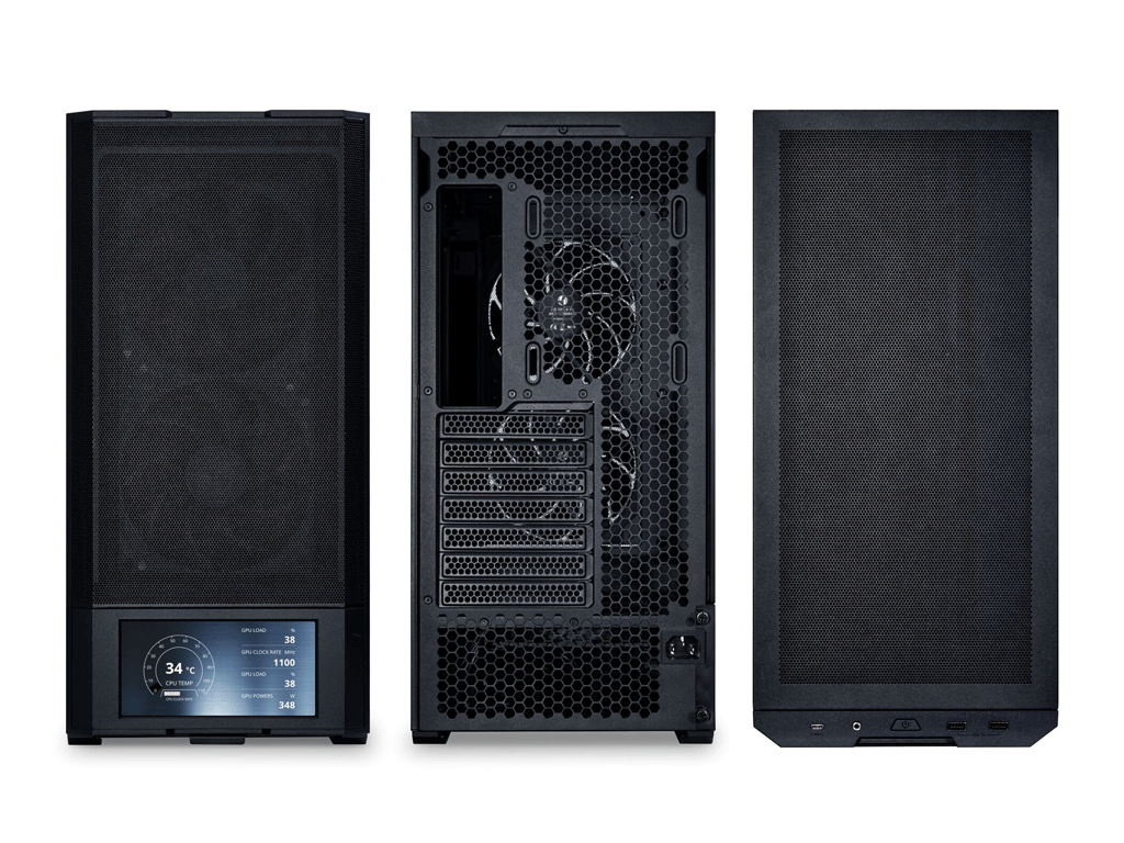 Pladenj za matično ploščo dovoljuje učinkovito hlajenje in odličen pretok zraka. Napajalnik je strateško postavljen na sprednji strani z vhodi na stran za enostaven priklop kablov. Priložen je tudi podaljšek za priklop napajalnika. Na sprednji strani je vgrajen tudi 6-palčni LCD zaslon z 60Hz osveževanjem, 720 x 1600 px resolucije in 500 nit svetilnosti. Omogoča prikaz različnih podatko, grafik ter vrhunsko personalizacijo. Deluje lahko tudi kot drugi zaslon računalnika.