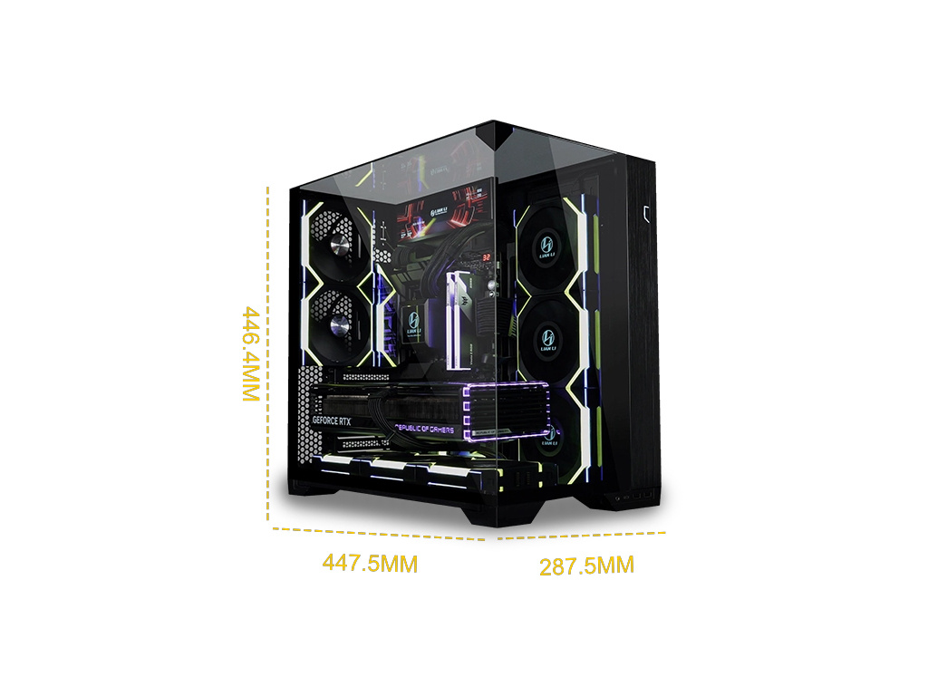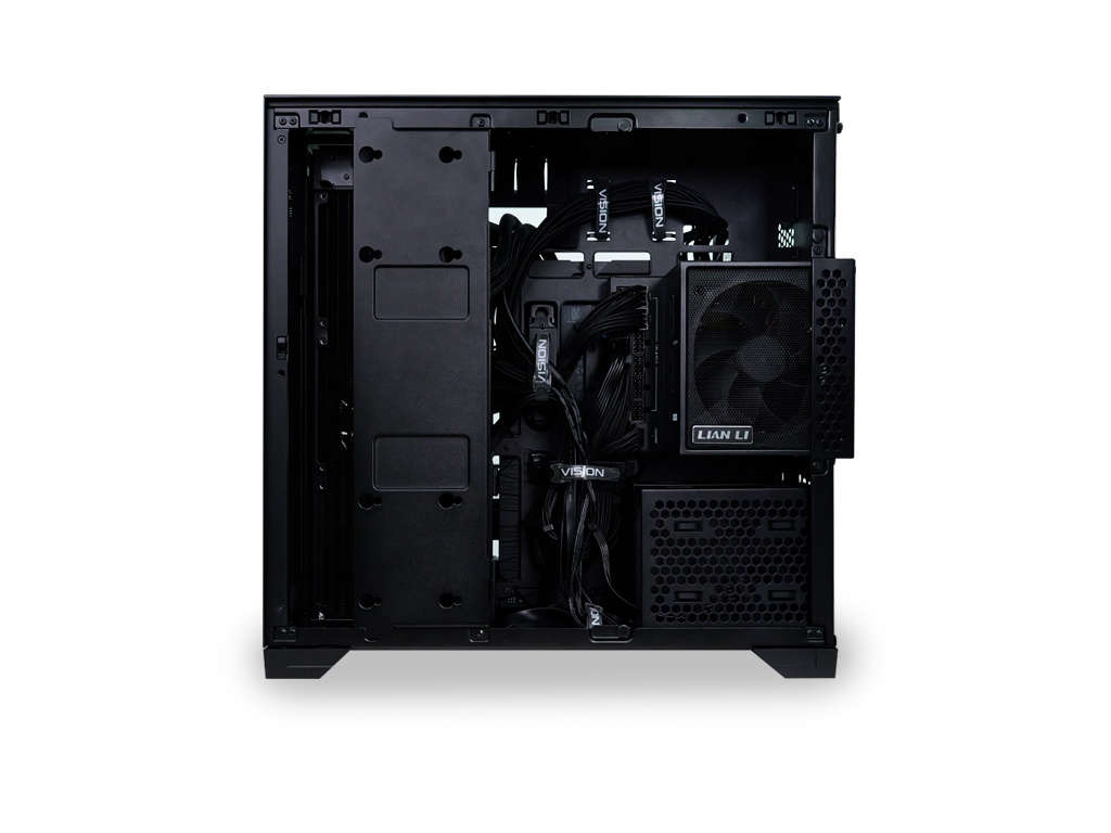 O11 Vision Compact je elegantno računalniško ohišje s tremi stranicami iz kaljenega stekla brez vmesnih nosilnih strebričkov. Omogoča neoviran pogled na strojno opremo v notranjosti ohišja.