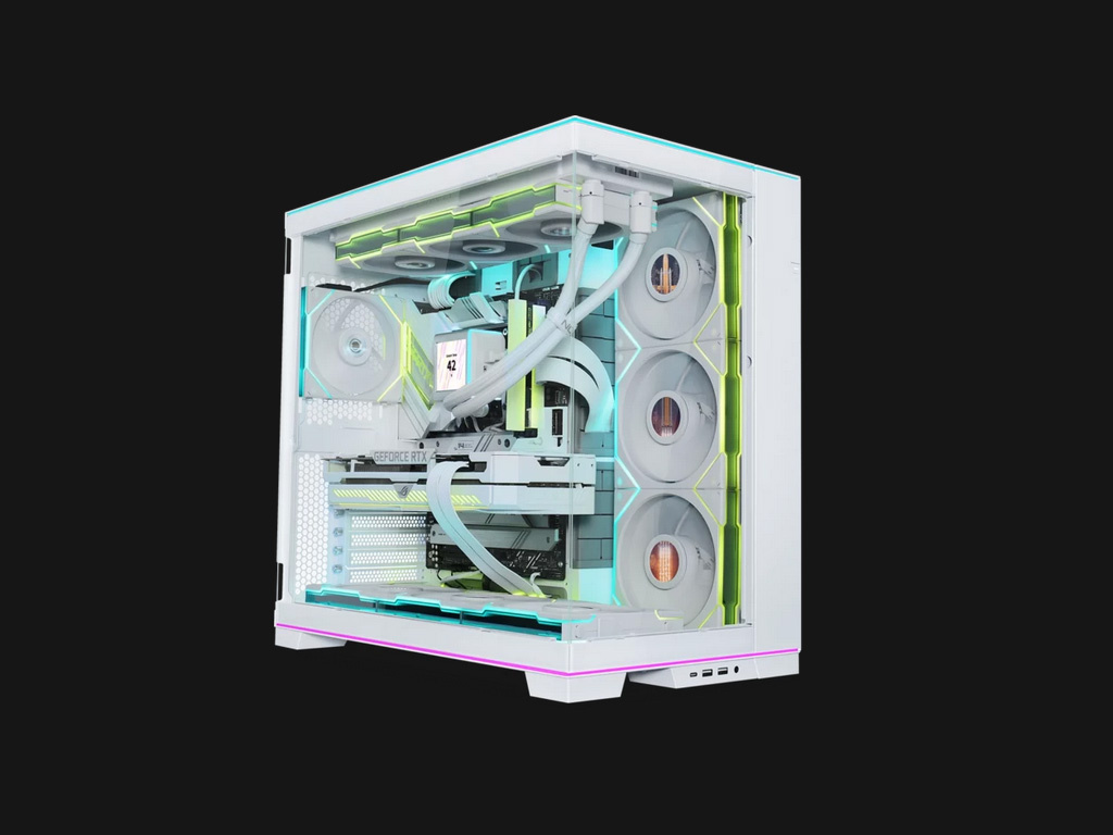 Ohišje O11D EVO RGB ima zgoraj in spodaj RGB 1,5 mm debel LED trak, ki poteka v obliki črkle L. Omogoča osvetlitev v 14 različnih svetlobnih učinkih, enostavno prilagoditev svetlosti in sinhronizacijo z osvetlitvijo na matični plošči.