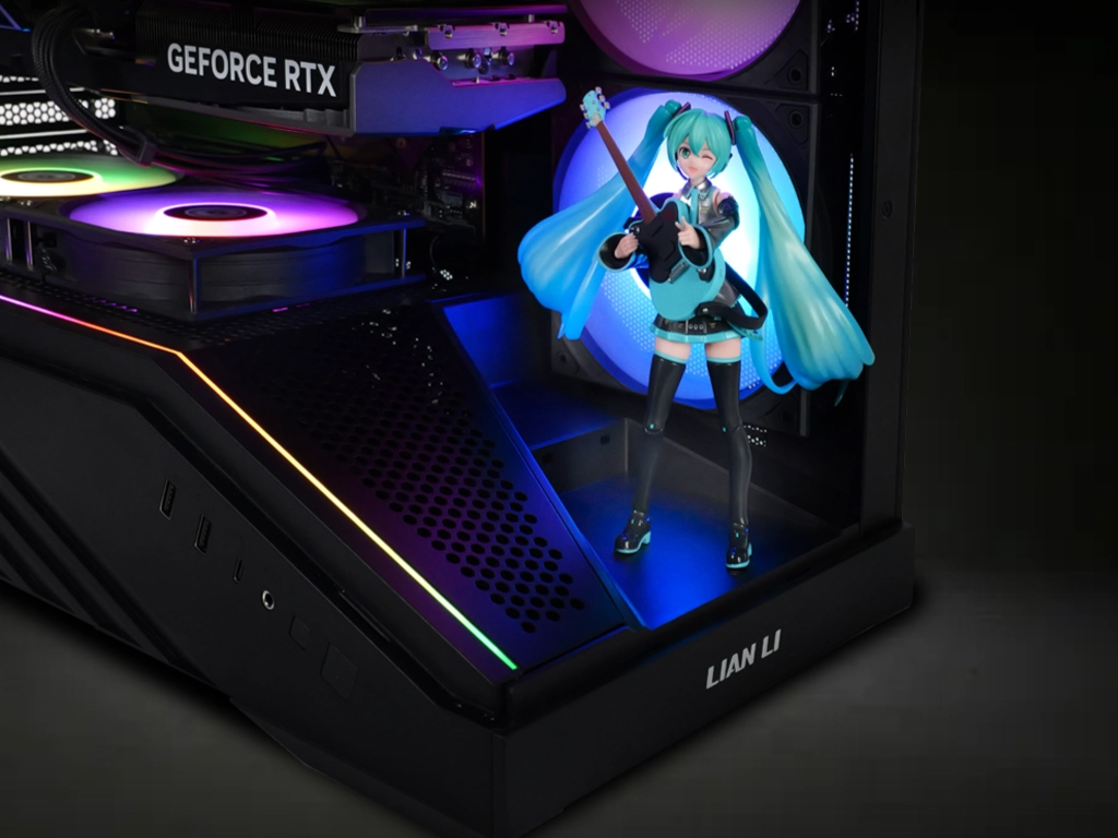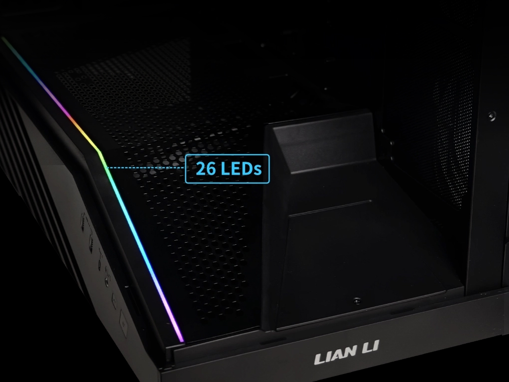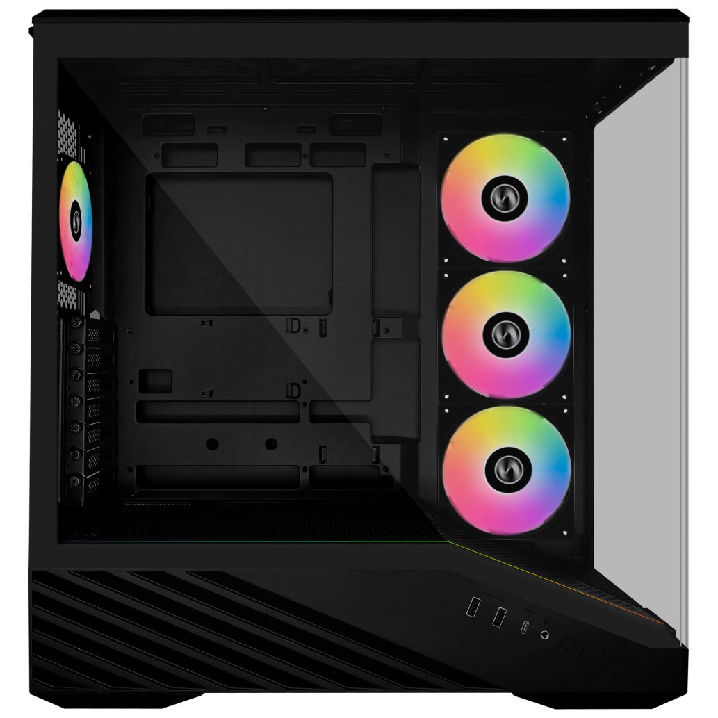Ohišje ima v notranjosti prilagodljivo poličko, ki omogoča namestitev personaliziranih detajlov, ki se odlično zlijejo z notranjostjo ohišja. Prednameščeni so tudi 3x ARGB ventilatorji na strani in 1x na zadnji strani.