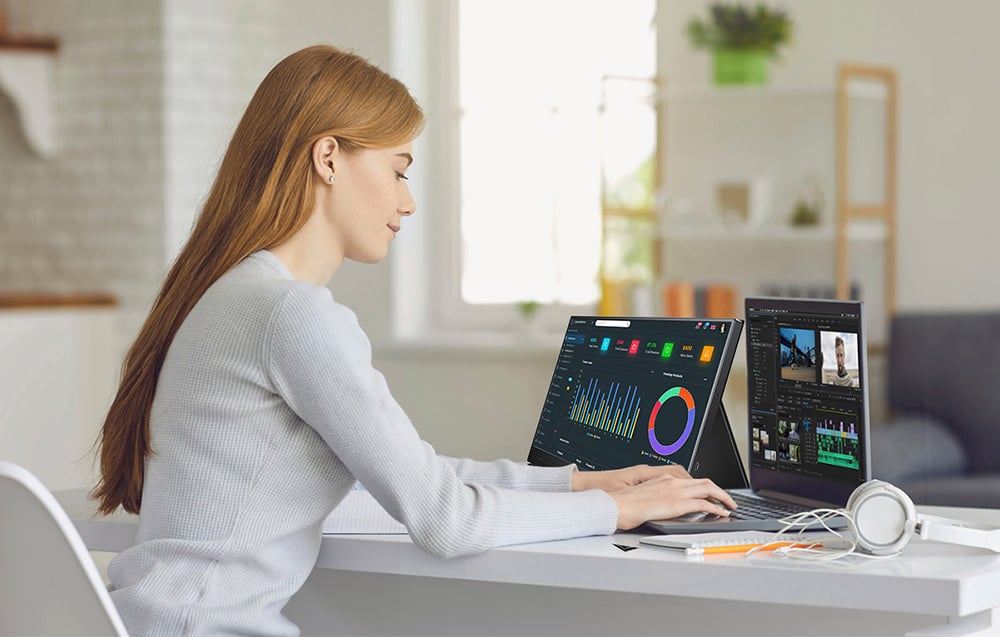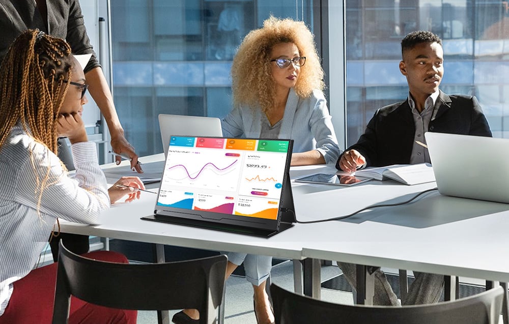 Monitor je združljiv z napravami USB-C, kar vam omogoča, da razširite zaslon telefona za delo ali igranje. Monitor deluje tudi z igralnimi konzolami, kot so PS4, Xbox One in Switch, zaradi česar je popoln spremljevalec na potovanjih. S funkcijo podvajanja zaslona B5 vam omogoča priročno predstavitev vsebine med sestanki. Vrata OTG (micro USB) pa vam omogočajo priključitev miške ali tipkovnice.