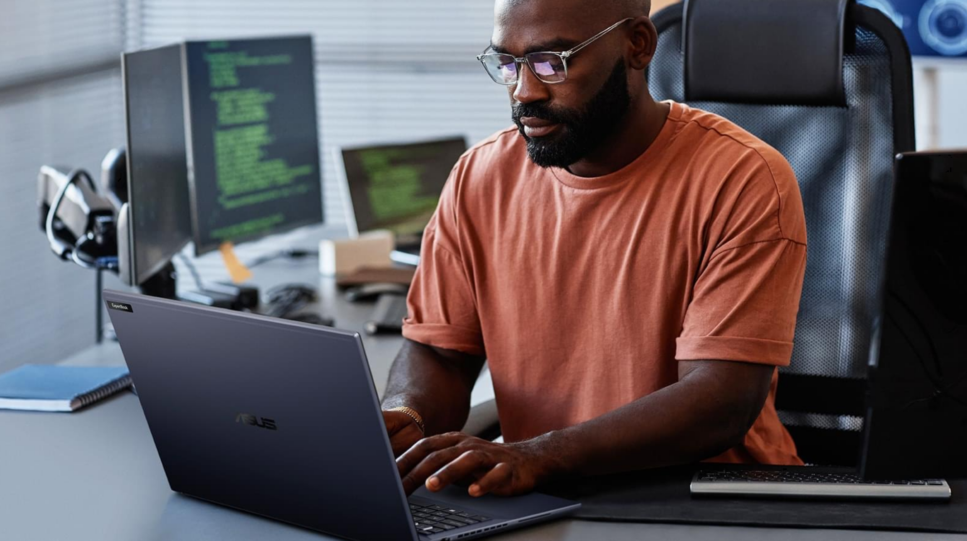 Lahko, v celoti kovinsko ohišje, ki tehta že od 1,65 kg, pomeni, da je ExpertBook B5 pripravljen na potovanje, kamorkoli želite – tako da lahko delate kadarkoli in kjer koli. Ima tudi zmogljivo baterijo za ves dan, ki vas ne bo pustila na cedilu, in podporo za tehnologijo hitrega polnjenja za povečanje hitrosti, kadar koli jo potrebujete.
