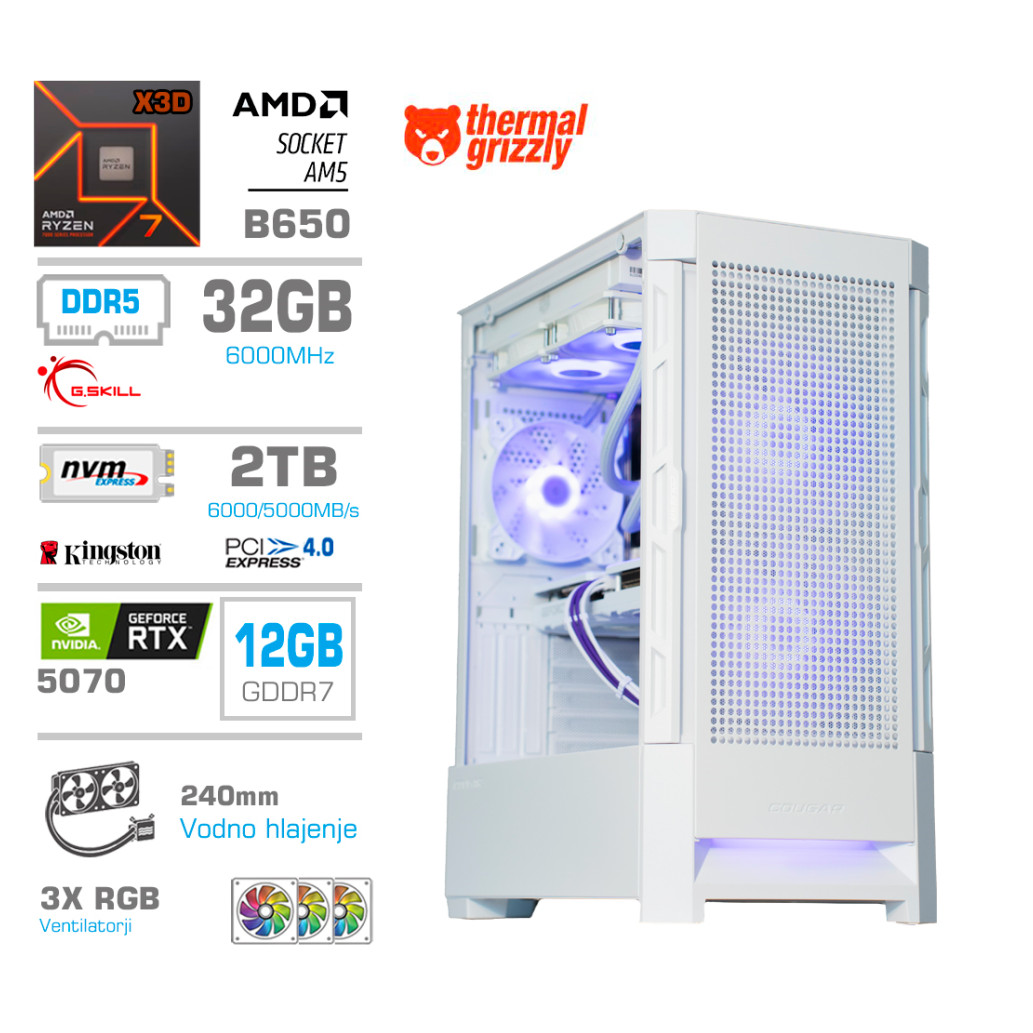 Računalnik MEGA MT S8 R7-7800X3D/RTX5070/32GB-DDR5/2TB-4.0/750W/Brez OS/bela RGB + Estetski napajalni kabli [Vijolična / Bela]