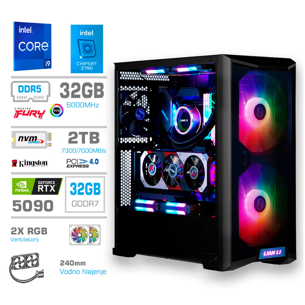 Računalnik MEGA TWR S10 i9-14900K/RTX5090/32GB-DDR5/2TB-4.0/1000W/Brez OS/črna RGB
