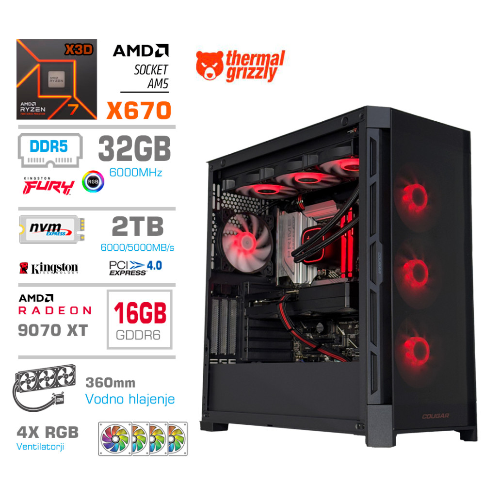 Računalnik MEGA TWR S11 R7-7800X3D/RX9070 XT/32GB-DDR5/2TB-4.0/1050W/Brez OS/črna RGB