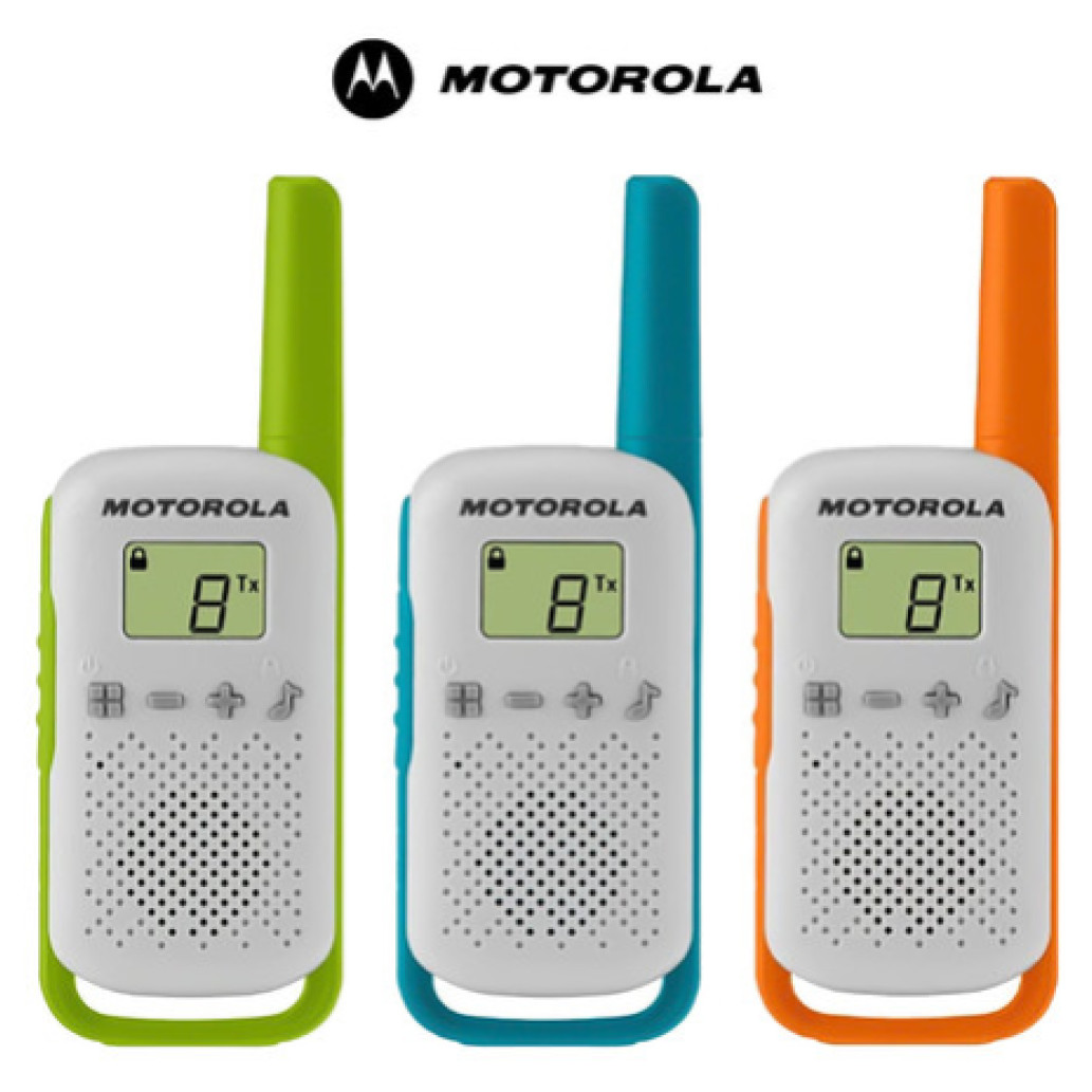 Radijska postaja Motorola Walkie Talkie T42 je kompaktna in preprosta za uporabo. Primerna je za vse vrste zunanjih športov (kolesarjenje, jezdenje, tek, pohodništvo, kampiranje,…), za različna delovna mesta ter tudi za domačo uporabo. Odlikuje jo enostavnost, preprostost in kompaktna izdelava. Radijska postaja ima LCD ekran, 8 prednastavljenih kanalov, funkcijo scan/monitor, prikaz stanja baterije in domet do 4 km. Motorola Walkie Talkie T42 ima prostor za 3 x AAA baterije (baterije niso priložene v kompletu). Postaja ima možnost skeniranja vseh 16 kanalov, vendar mora uporabnik sam vklopiti kanale od 9 do 16.