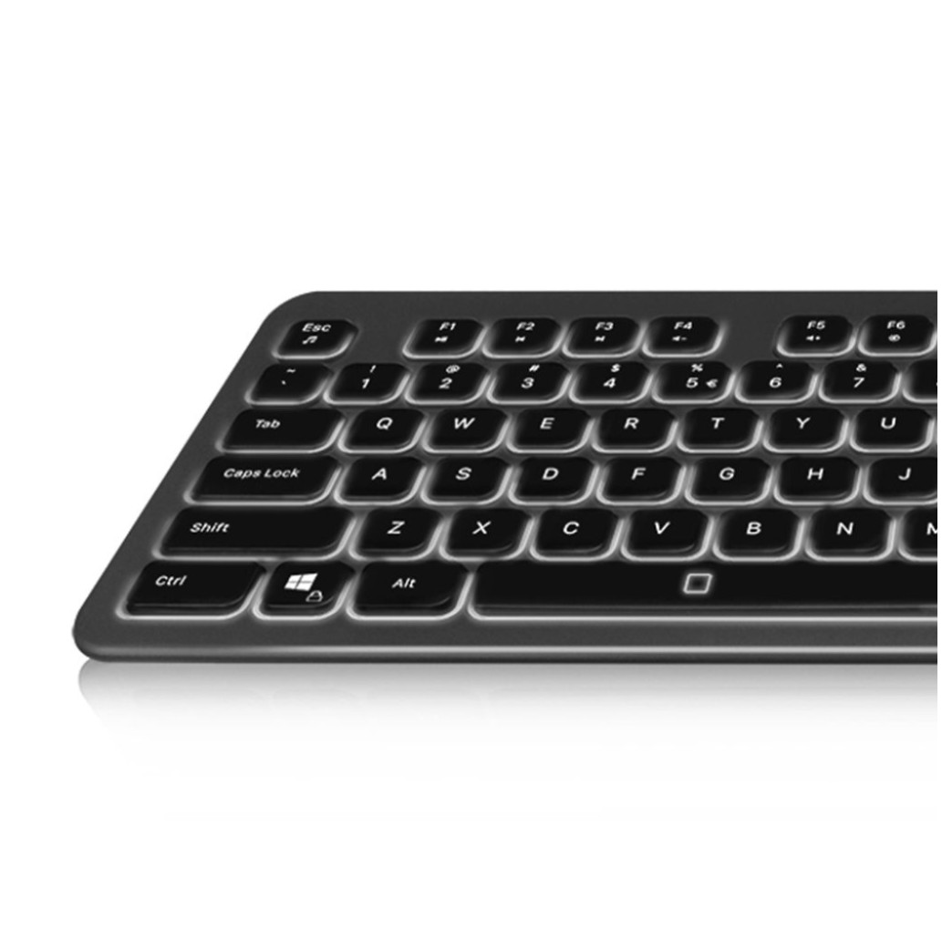 Tipkovnica vsebuje nastavljivo LED osvetlitev tipk ter je tudi opremljena s tihimi tipkami, ki ne motijo okolice med uporabo.