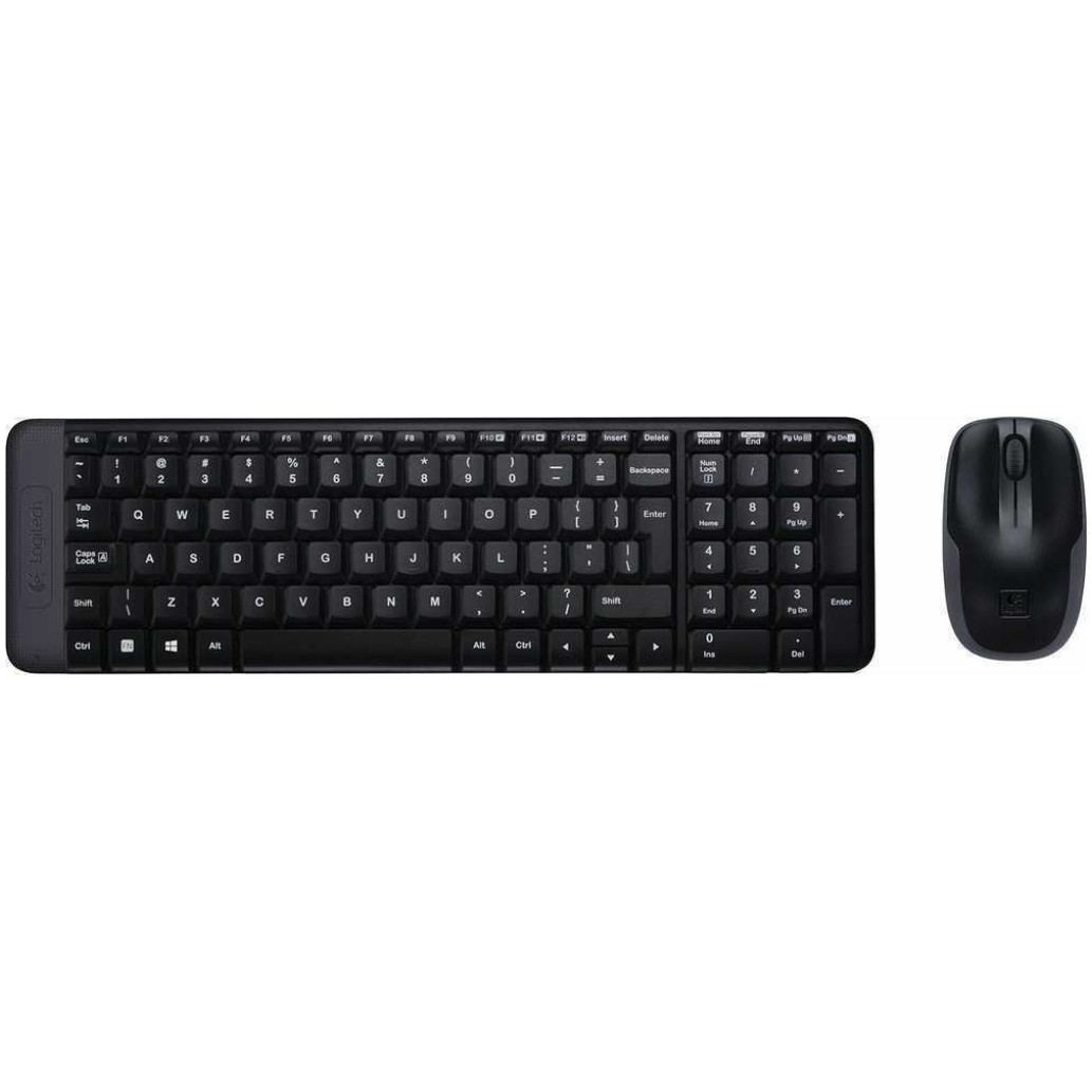 Logitech MK220. Faktor oblike tipkovnice: polna velikost (100%). Stil tipkovnice: ravna. Tehnologija povezovanja: Brezžična, Vmesnik naprave: Brezžična RF, Postavitev tipkovnice: QWERTY, Priporočena uporaba: Office. Barva izdelka: črna. Priložena miška US Layout