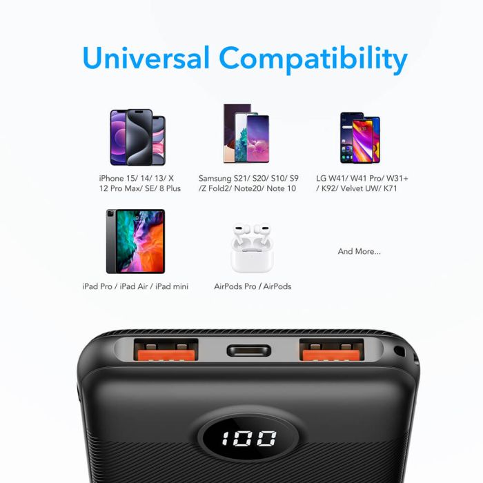 VEGER-jeva močna prenosna baterija je široko združljiva z večino glavnih naprav, kot so iPhone, iPad Pro, Samsung, Pixel itd.